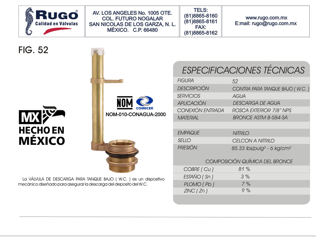 Válvula de Descarga para W.C. Dual Flush Botón Lateral