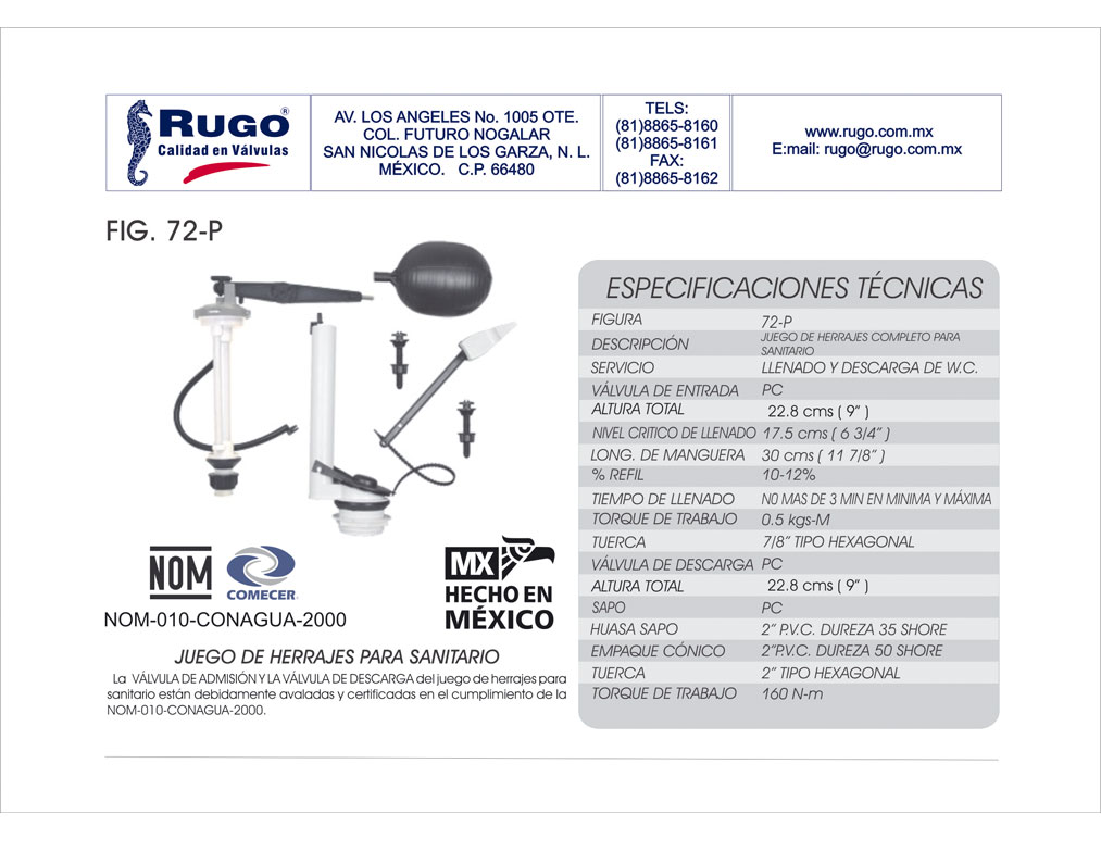 Juego Completo de Herrajes para W.C. para Tanque Bajo