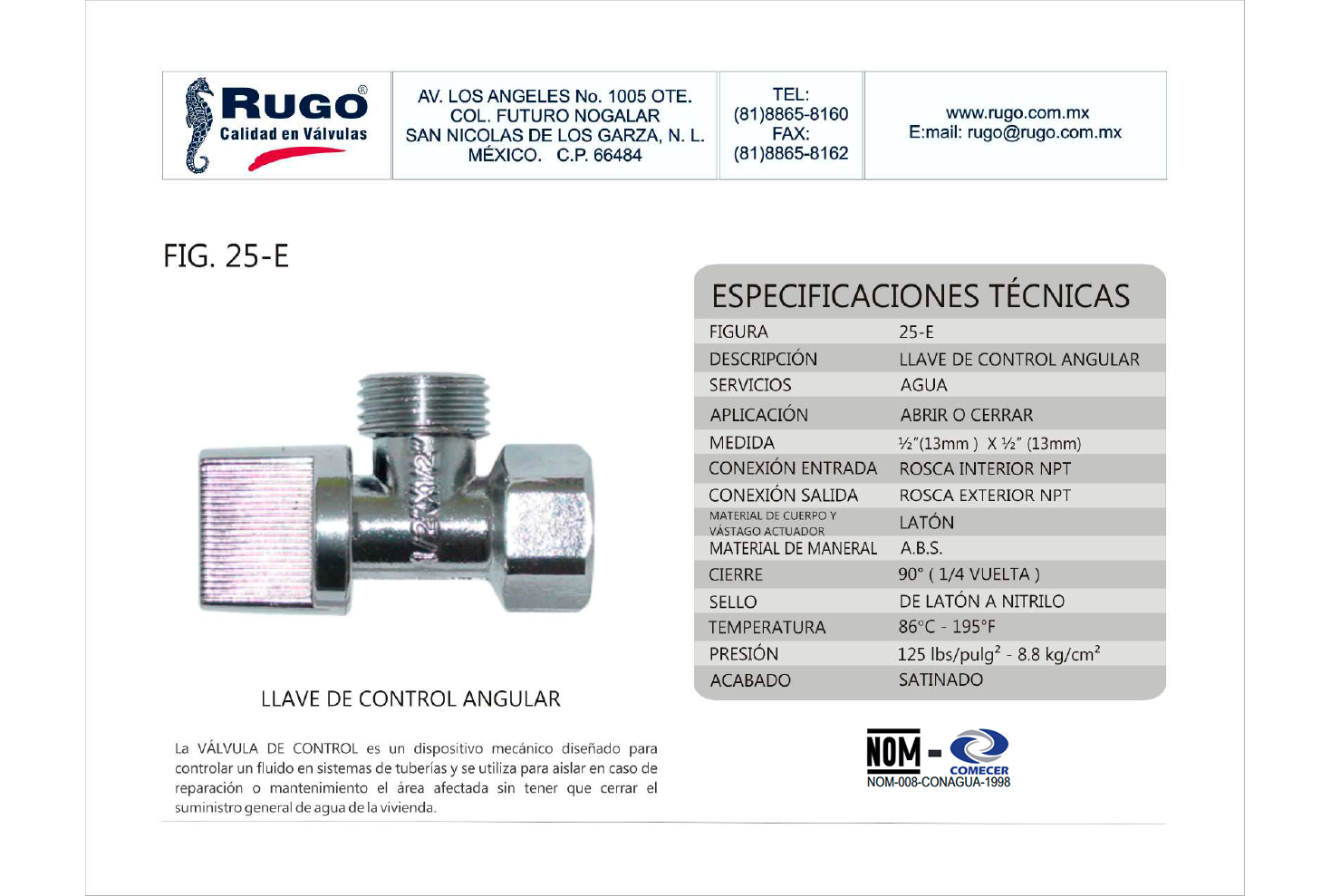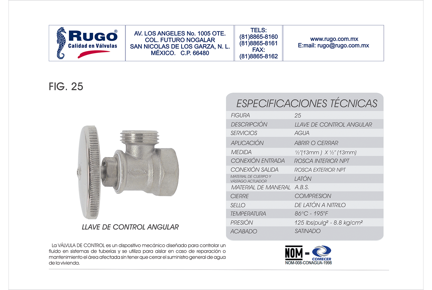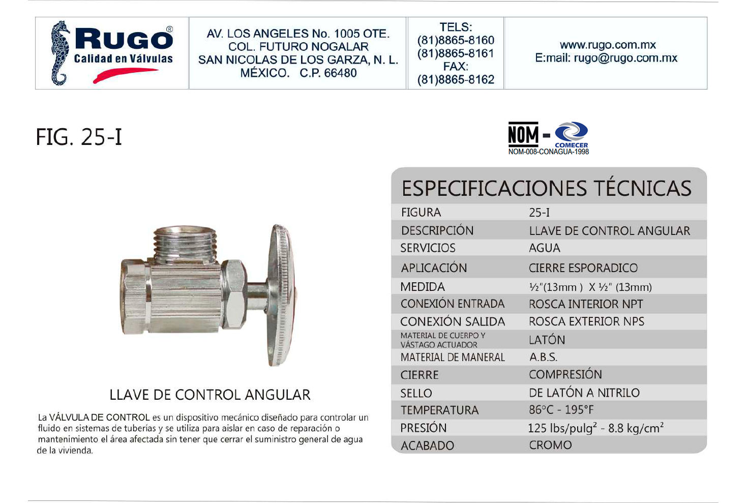 Llave de Control angular roscable